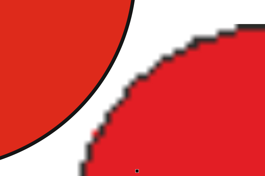 В отличие от векторного рисунка, изображения, закодированные растровым способом, при масштабировании теряют своё качество. Например, при увеличении маленькой картинки до больших размеров, становятся видны пиксели.
