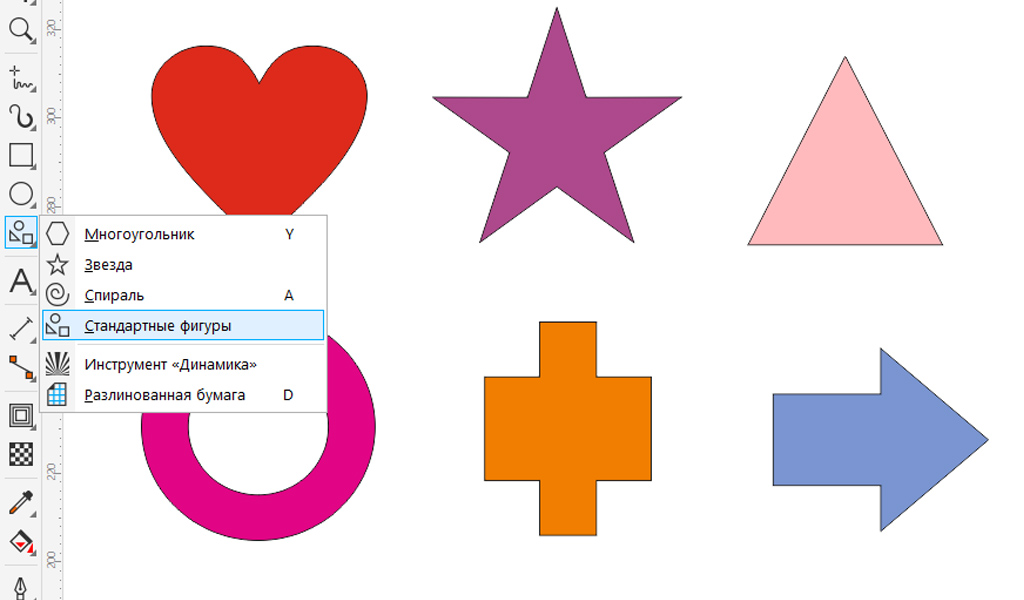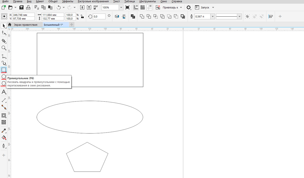 Создание объектов в CorelDRAW: прямоугольник, эллипс, многоугольник, простые формы.