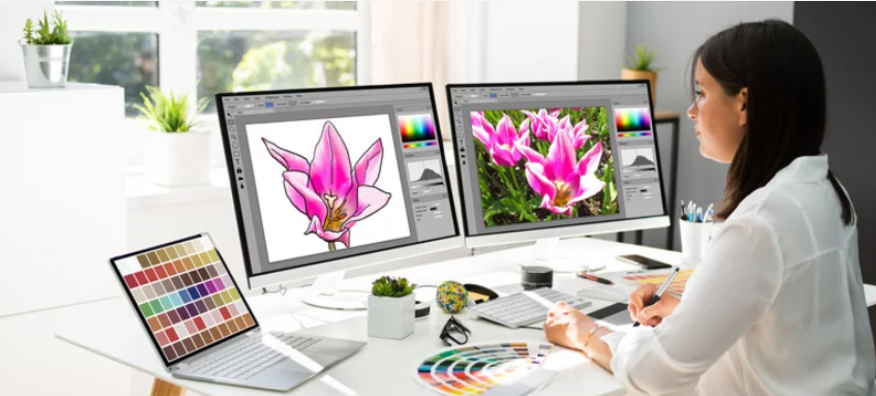 Для обработки фотографий и работы с растровой графикой дизайнеры используют самый популярный растровый редактор Adobe Photoshop. Это вторая обязательная программа для будущего дизайнера. Именно в ней готовится фон для макетов полиграфии, обрабатываются портреты, делается ретушь фотографий и монтаж из нескольких слоёв.