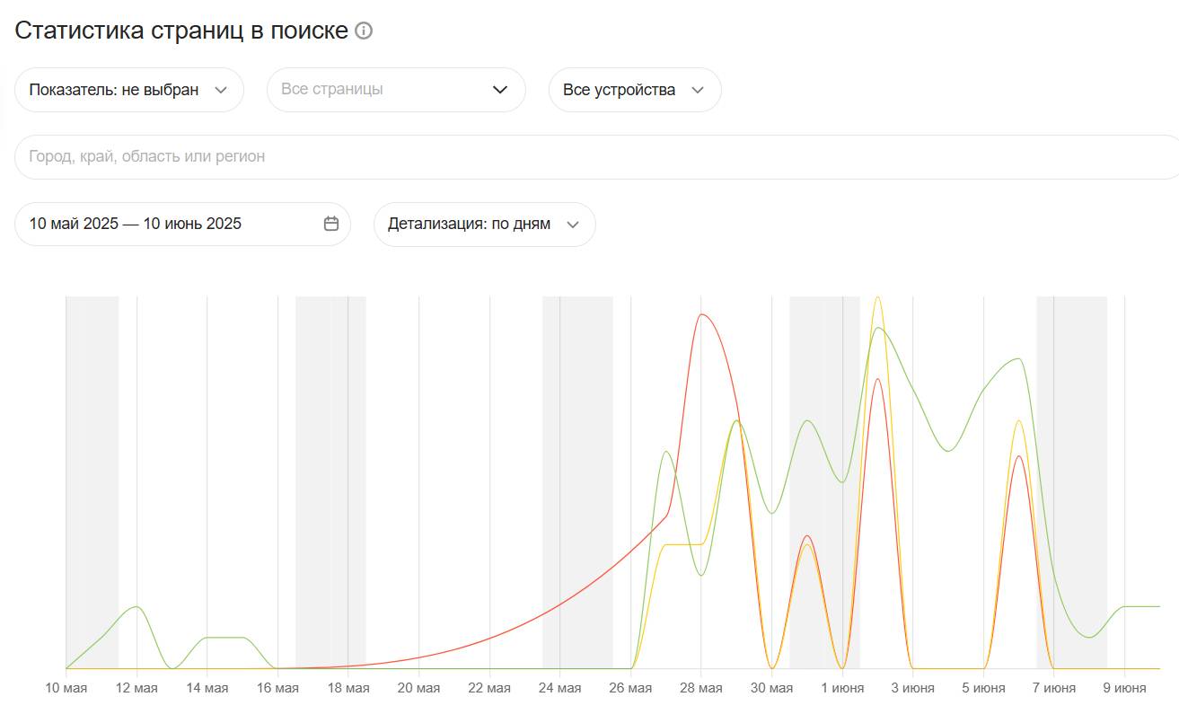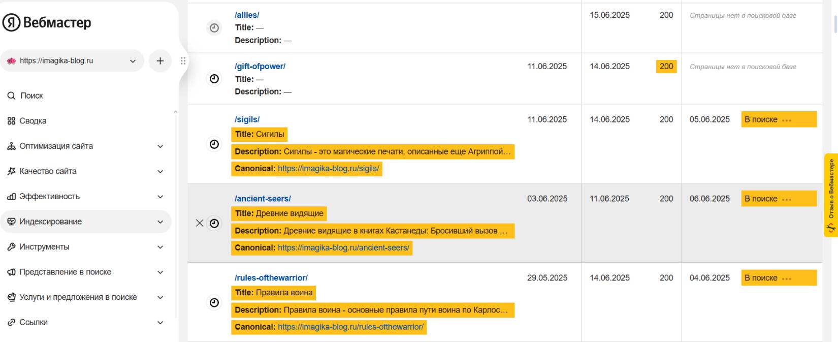 Рис. 22. Мониторинг страниц в Яндекс.Вебмастере