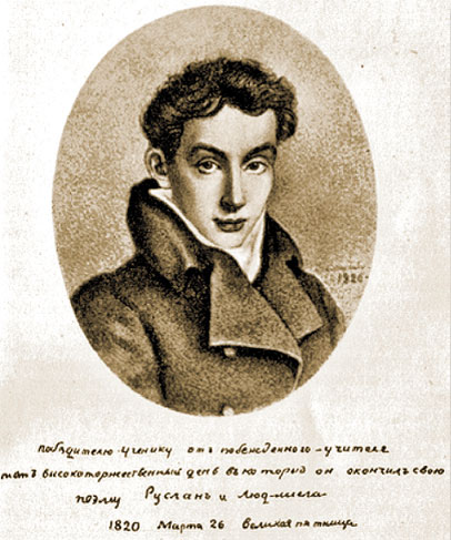 «Победителю-ученику от побеждённого учителя в тот высоко торжественный день, в который он окончил свою поэму «Руслан и Людмила». 1820. Марта 26. Великая пятница»