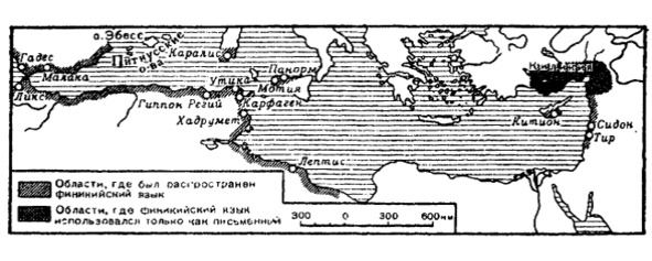 Рис. 12. Территория распространения финикийского языка. Из книги Шифмана «Финикийский язык»