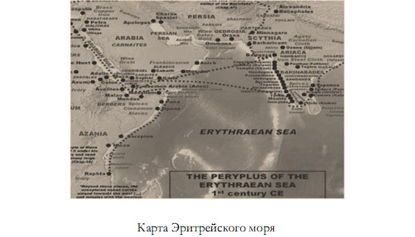 «Перипл Эритрейского моря» сайт Wikipedia.org/wiki/Перипл_Эритрейского_моря). Ниже показан увеличенный фрагмент этой карты