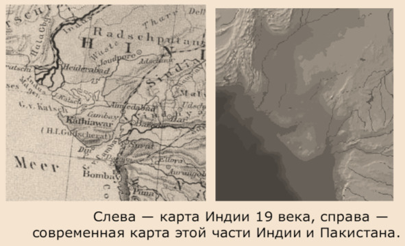 Для лучшего понимания дальнейшего приведу карту северо-запада Индии 19 века и современную карту этого же района.