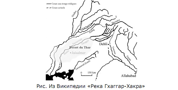 У Страбона интересный фрагмент связанный с Евфратом, [60]: «Поликлит, однако, утверждает, что Евфрат не разливается, потому что течет через обширные равнины; одни горы находятся от него на расстоянии 2000 стадий, а Коссейские – едва на 1000; последние не высоки, не покрыты глубокими снегами и не вызывают внезапного таяния большой массы снега. По его словам, вершины этих гор находятся в области над Экбатанами по направлению к северу, а в области по направлению к югу они разделяются и по мере расширения становятся значительно ниже; в то же время большая часть вод попадает в Тигр и река выступает из берегов». Очевидно, что Поликлит описывает вовсе не нынешние Евфрат и Тигр, а совершенно другие реки. Если считать, что речь у него идет об Индии, то под описание этих рек, возможно, подходит река Сарасвати, см. выше рисунок из Википедии реки Гхаггар-Хакра. Кстати, у Страбона разлив Евфрата происходит в начале лета, а если проверить это утверждение по Интернету, то разлив Евфрата происходит в марте-апреле, правда, здесь можно спорить, точная цитата у Страбона: «Дело в том, что Евфрат в начале лета разливается, причем вода начинает прибывать с весны во время таяния снегов в Армении…»