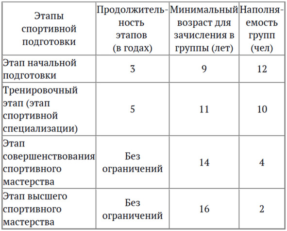 Программа составлена для каждого этапа подготовки с учетом его специфики и возрастных, морфофункциональных особенностей спортсменов. Программный материал по технико-тактической подготовке систематизирован с учетом взаимосвязи техники и тактики, а также последовательности изучения технических приемов и тактических действий как в отдельном годичном цикле, так и на протяжении многолетнего процесса подготовки высококвалифицированного спортсмена. На тренировочном этапе, этапах спортивного совершенствования и высшего спортивного мастерства планирование годичного цикла подготовки определяется календарем спортивных соревнований, поэтому продолжительность сезона подготовки устанавливается индивидуально для каждой группы.