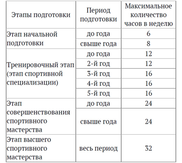 Таблица №3. Объем максимальной тренировочной нагрузки по этапам и годам спортивной подготовки
