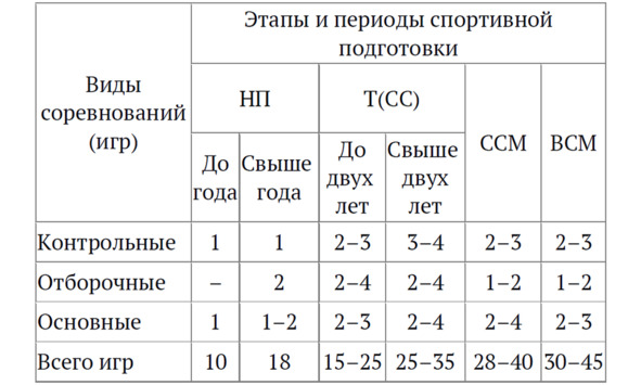 В таблице №5 приведены планируемые показатели соревновательной деятельности, которые необходимо взять за основу при формировании календарного плана физкультурных и спортивных мероприятий организации, осуществляющей спортивную подготовку, с учетом этапа подготовки спортсмена.