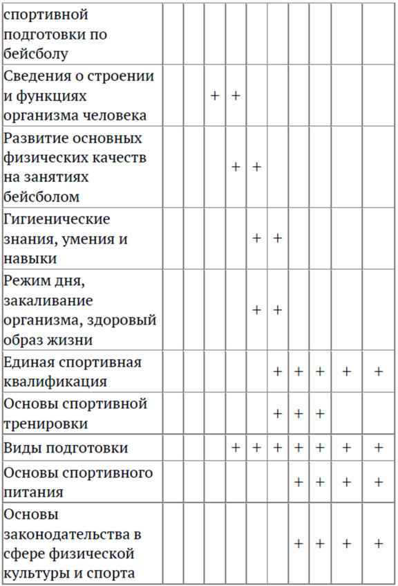 Программный материал спортивной подготовки содержит требования к содержанию видов подготовки, охватывающих все виды спортивной подготовки занимающихся и обеспечивающих интегральную подготовку высококвалифицированных бейсболистов.