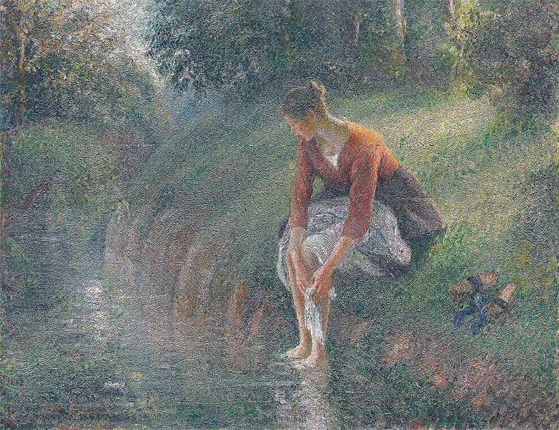 18 Камиль Писсарро. Женщина, моющая ноги в ручье. 1894–1895. Холст, масло. 73 × 92 см