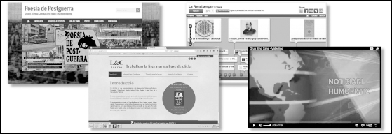 Tot seguit, presentem alguns exemples de TIC emprades pels alumnes per a treballar diferents projectes de llengua i literatura en secundària: realització d’una web per a treballar la poesia de postguerra, que inclou una línia del temps; projecte per a treballar una lectura amb la realització d’una entrada a Viquipèdia i d’una web on es presenten els tutorials que han de seguir els alumnes; noticiari en clau d’humor per a treballar estructures lingüístiques; presentació del període literari de la Renaixença amb la inclusió de diversos materials multimèdia sobre els autors, les obres i el context en què apareixen.