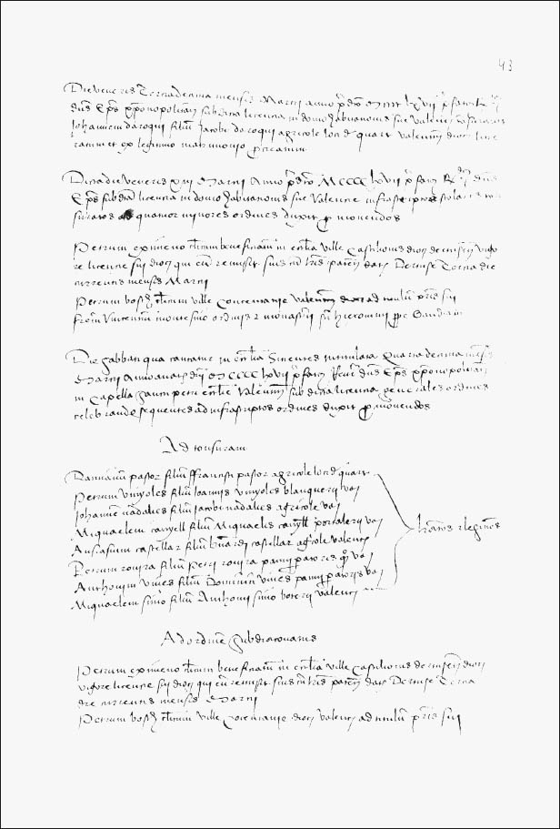 Dicta die lune octava menssis augusti anno predicto millesimo quadringentesimo sexagesimo tercio, reverendus in Christo pater dominus Michael, Dei gracia episcopus Christonopolitanus, in domo habitacionis sue quam fovet in civitate valentina, sub prefata licencia proxime superius contenta, tonssuravit Franciscum de València, filium Alffonsi de València, giponerii, civitatis Valencie, de legitimo matrimonio procreatum.9