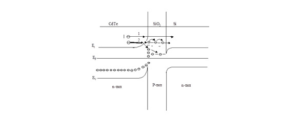 Рис. 7. Схема перехода электронов между теллуридом кадмия, оксидом кремния и кристаллическим кремнием