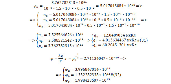Вычисленные значения зарядов могут быть сформированы в значения отдельно взятых потенциалов исходя из определения потенциала напряжённости поля (23).