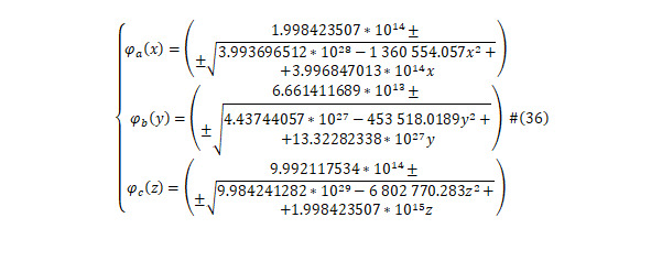 Каждое сформированное значение при помощи подстановки в каждый из форм проекций функции потенциала в статическом поле, приводит посредством дальнейшего решения к общему виду уравнения в проекциях (24), каждая из которых может быть преобразована до уровня общего вида непосредственной функции (25).
