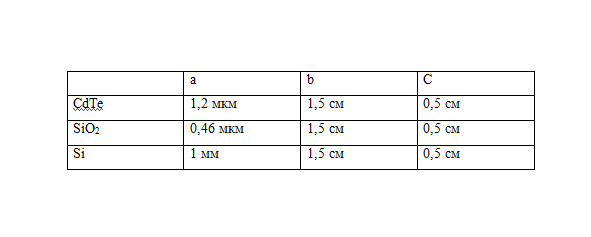 Таблица 1. Размерности слоёв полупроводникового элемента