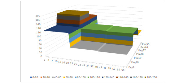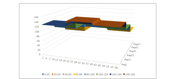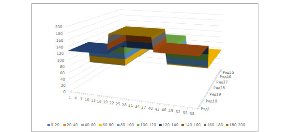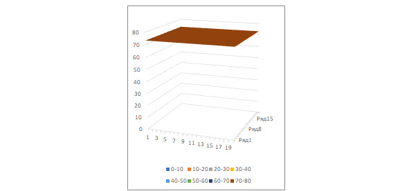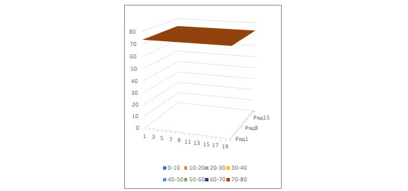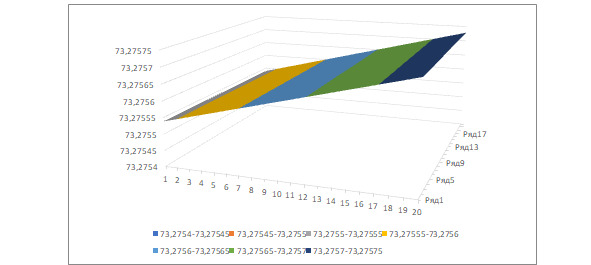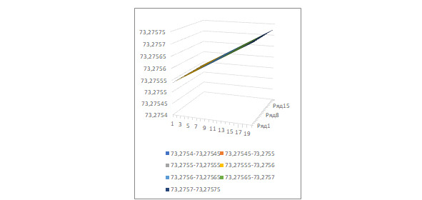 Так, в виде максимально дискретно представленного графика, моделирующий весь полупроводниковый элемент может быть представлен сборник всех на данный момент полученных трёхмерных графиков в различных комбинациях, что также соответствует различным комбинациям расположения слоёв полупроводникового элемента. При этом каждая из комбинаций может быть представлена посредством отдельных выборок, где отдельная роль отводиться 2 измерениям, а третья изменяется, соответствуя общей выборке в Табл. 2—4.