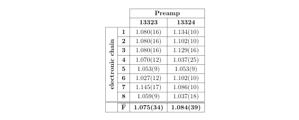 Table 1: Amplification factor (F), of each electronic (A1422) chain and the average value (F) obtained for each module.