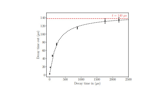 (b) Outputdecaytimeasafunctionoftheinput decaytime.Forlonginputpulses, thedecaytime saturatesataround140µs.