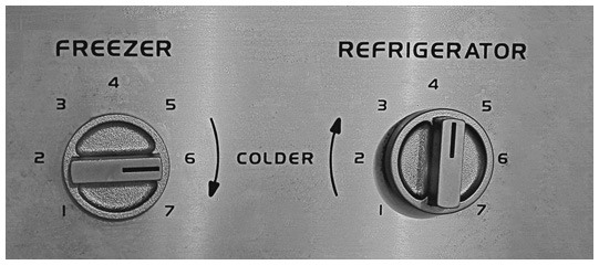 Два отделения – основное и морозильник – и два регулятора (оба расположены в основном блоке). Ваша задача: предположим, что температура в морозильной камере слишком низкая, а в обычной секции – нормальная. Как вы повернете регуляторы, чтобы в морозильной камере стало теплее, а температура основного отсека осталась прежней? (Фото автора.)