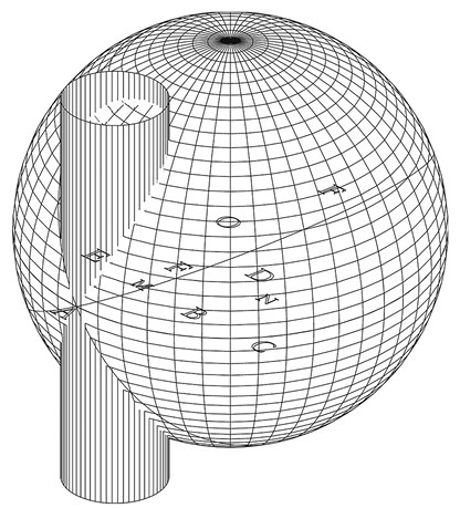 Применяя такую аппроксимацию к движению планет, по крайней мере качественно, можно свести кажущееся хаотичное перемещение к закономерному. Это открытие, без сомнения, вызвало восторг у Платона. Однако какую цель ставил перед собой сам Евдокс? Есть все основания полагать, что восхищение, которое вызвало у греков предложенное им объяснение, относилось не столько к предсказательной силе теории, сколько к ее геометрическим достоинствам. Для оценки реального характера достижений Евдокса необходимо хотя бы в общих чертах воспроизвести ее геометрическую реконструкцию, предложенную в 1870‐х гг. талантливым итальянским астрономом Джованни Вирджинио Скиапарелли. Используя известные теоремы греческой геометрии, уже употреблявшиеся во времена Евдокса, он показал, что гиппопеда является линией пересечения цилиндра со сферой, на которой лежит эта кривая. Цилиндр при этом, как предполагается, изнутри касается сферы (см. ил. 43).
