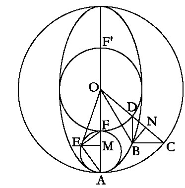 Модель Евдокса оказалась столь значима в истории геометрической астрономии, что нам просто необходимо доказать ее хотя бы схематично для демонстрации элегантности астрономической доктрины, разработанной более двадцати трех столетий назад. Будем различать несущую и несомую сферы. На ил. 44 направление взгляда (сверху) совпадает с осью первой сферы и параллельно оси цилиндра, на поверхности которого находятся точки F, E и A. (Поучительно будет спросить, почему этот цилиндр не параллелен другой оси; или, например, не расположен симметрично между ними.) A – исходная точка планеты, а дуга AB – ее движение вдоль экватора несомой сферы за какое-то время. Если смотреть сверху, то он (экватор) будет казаться эллипсом, а угол AOB, как он виден на рисунке, – будет меньше реального трехмерного угла. На самом деле он равен изображенному на рисунке углу AOC, где C – это точка, отделившаяся от A в тот же момент времени, что и точка В, но движущаяся по другому кругу. Точки B и C, очевидно, будут располагаться на одном и том же уровне (CB образует перпендикуляр с OA). Рассмотрим теперь, как это составное движение планеты будет осуществляться во времени, если наблюдать за ним в плоскости диаграммы (то есть ортогональной проекции на эту плоскость). Планета движется вверх до точки B несомым движением и дополнительно поворачивается движением несущей сферы, осуществляющей перенос отрезка OB в OE; причем угол BOE равен углу AOC. Необходимо доказать, что точка E лежит на линии сечения цилиндра. Если угол CBD прямой, а точка D лежит на отрезке OC, то достаточно показать неизменность длины отрезка CD; поскольку в этом случае вся совокупность точек типа D (включая F) будет лежать на окружности с центром в O. Угол FEA также будет прямым, поэтому точка E будет лежать на окружности с диаметром FA, то есть на сечении цилиндра.