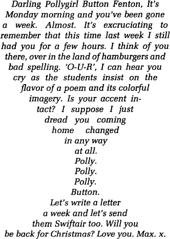 ‘Let’s,’ Polly agreed, ‘and write. Often.’