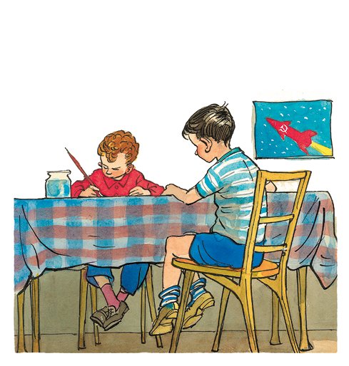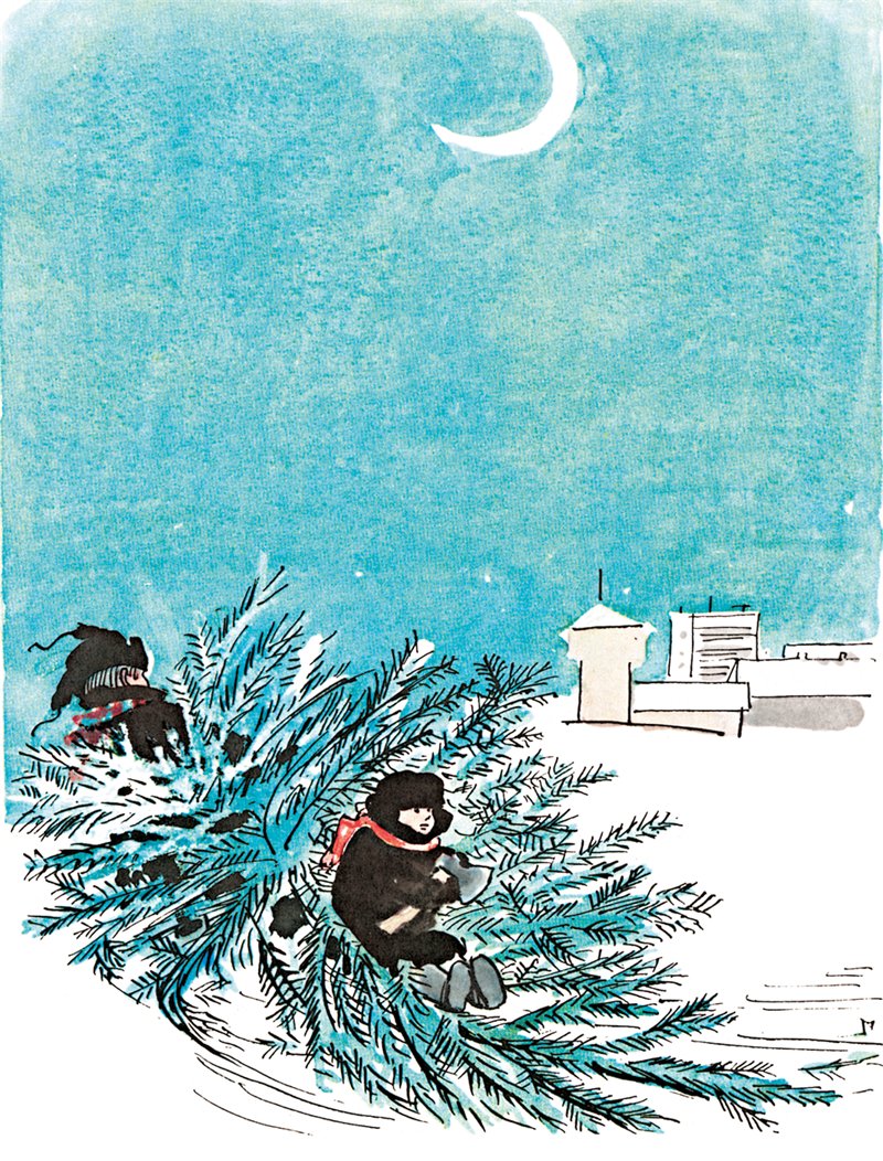 Схватил он фанерку и покатил к дворницкой. Там – ящик с песком. Он и стал из ящика песок на горку таскать. Посыпает впереди себя, а сам лезет всё выше и выше. Взобрался на самый верх.