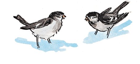 По своей натуре воробьи – ребята дружные, компанейские. Они очень любят обедать, как говорится, за общим столом. Вот один из них пристроился к кусочку хлеба и подщипывает его снизу. Другой задрал голову, выпятил грудь, словно гордый конь, и долбит этот же кусок сверху. Неожиданно он замечает, что мешает своему товарищу, и сейчас же переходит к другому куску, который лежит неподалёку, рядышком. «Кусков много, хватит на всех! – говорит он всем своим видом. – Ссориться совершенно не из-за чего».