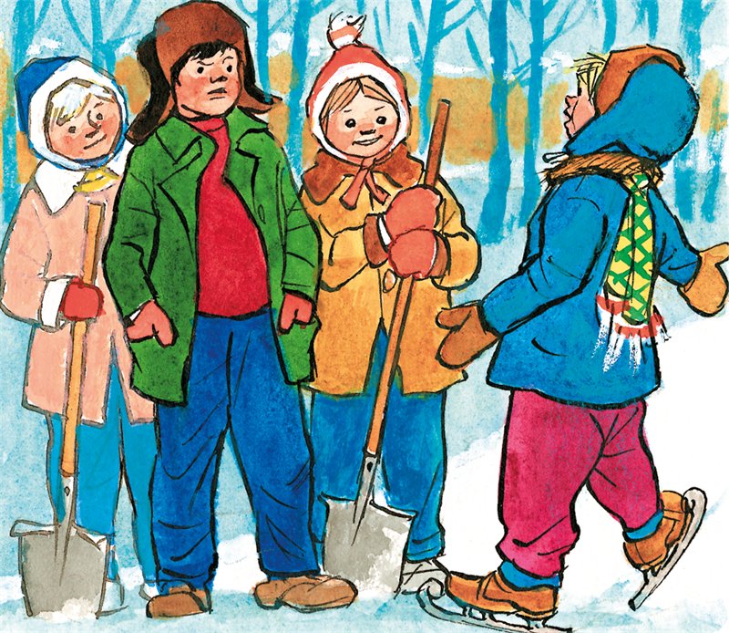 – Вот пообедаем, – говорили они, – а горка пока замёрзнет. А после обеда мы придём с санками и будем кататься.