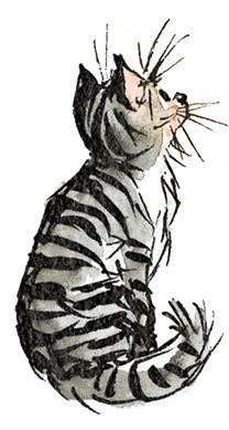 Глядь, из-под шляпы высунулся серый хвост, потом лапа, а потом и сам котёнок выскочил.