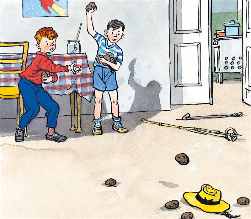 Они вернулись на кухню, набрали из корзины картошки и стали швырять её в шляпу. Швыряли, швыряли, наконец Вадик попал. Шляпа как подскочит кверху!