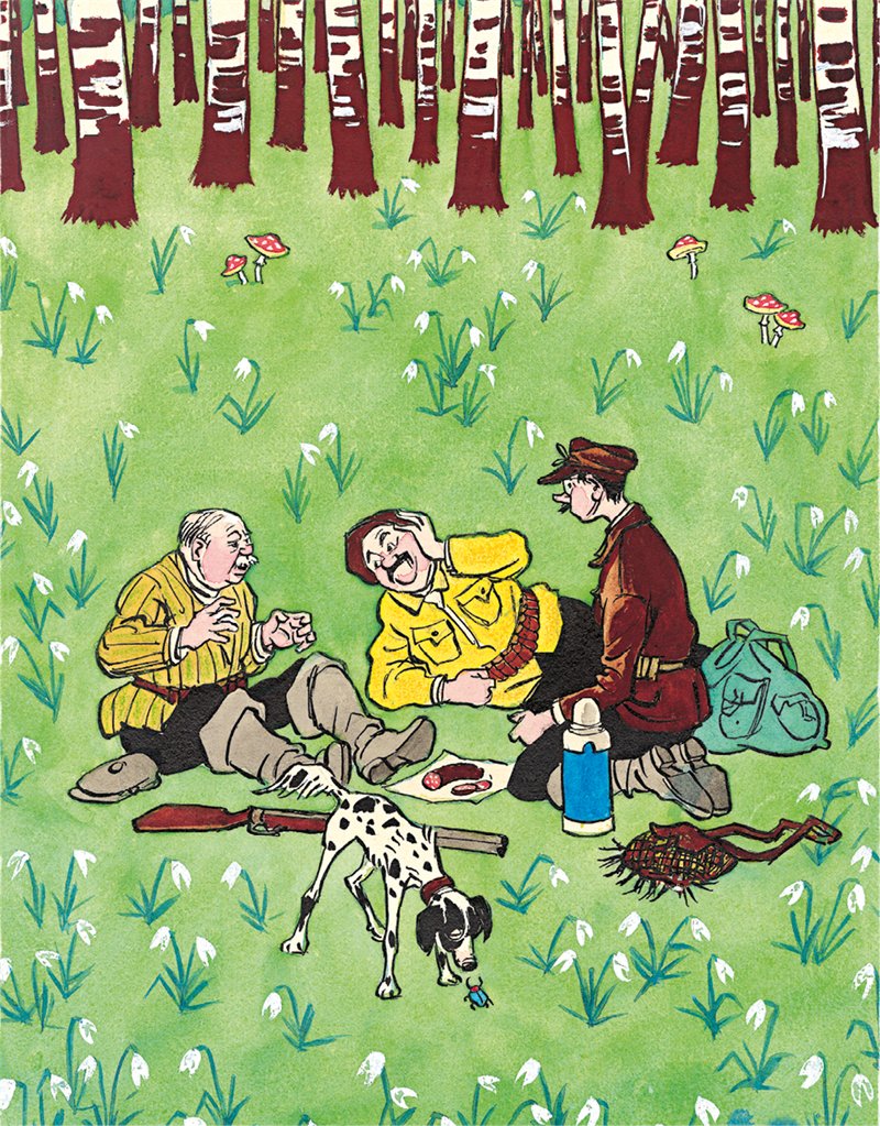 Жили-были три весёлых охотника: дядя Ваня, дядя Федя да дядя Кузьма. Вот пошли они в лес. Ходили, ходили, много разных зверушек видели, но никого не убили. И решили устроить привал: отдохнуть, значит. Уселись на зелёной лужайке и стали рассказывать друг другу разные интересные случаи.