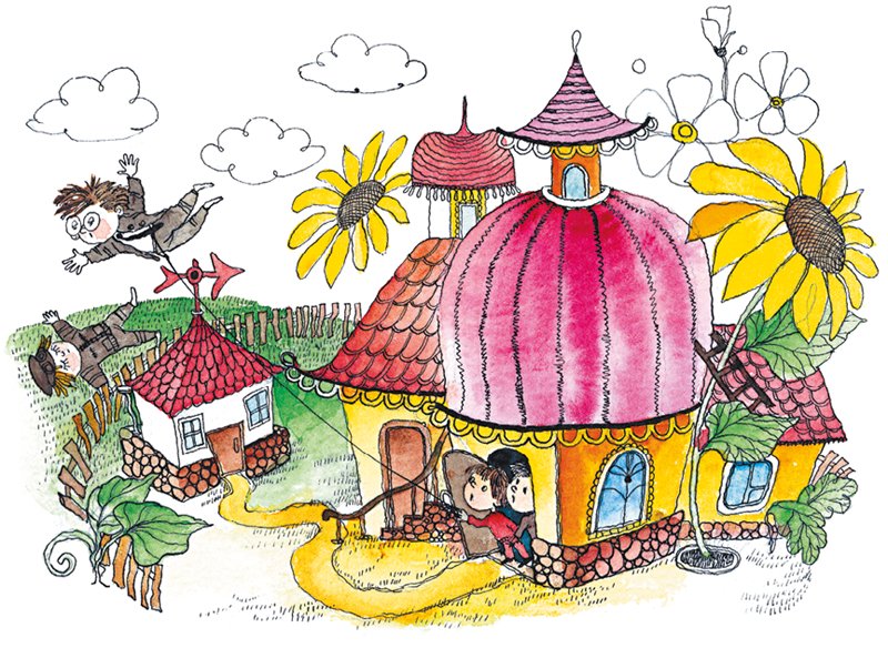 – Пожалуй, лучше всего взобраться на крышу дома и посмотреть вокруг. Сверху всегда виднее. Ну-ка, тяните меня на верёвке к дому! – закричал Знайка.