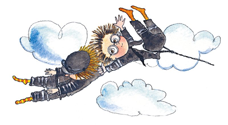 Знайка схватил Винтика под мышки, взвалил на спину и потащил сквозь пролом к дому. Сделав несколько шагов, Знайка почувствовал, что тяжесть как будто уменьшилась, а сделав ещё шаг, он неожиданно оторвался от земли и взвился вместе с Винтиком в воздух.