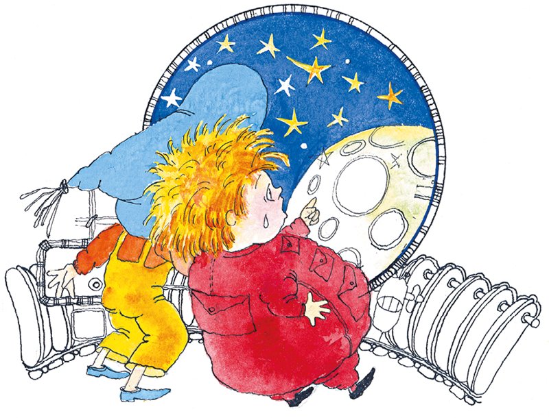 – Я тебе как дам кнопочку! Ты нажмёшь кнопочку, ракета остановится, и мы с тобой застрянем посреди мирового пространства! Нет уж, лучше полетим на Луну.