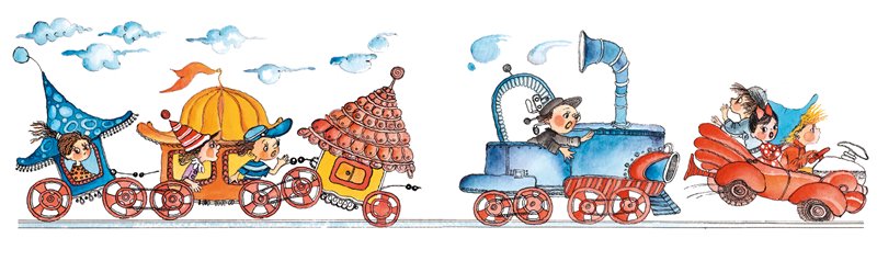 – Эко диво – поезд! Поставили домики на колёса, сами залезли в них и радуются, а паровоз тащит.