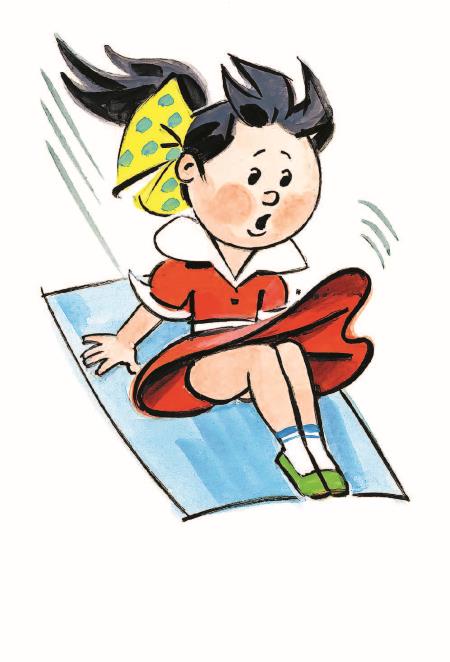 Удачнее всех скатилась Кнопочка. Она аккуратно уселась посреди коврика и, когда ехала вниз, не хваталась руками за стенки. Поэтому у неё всё получилось как нельзя лучше.