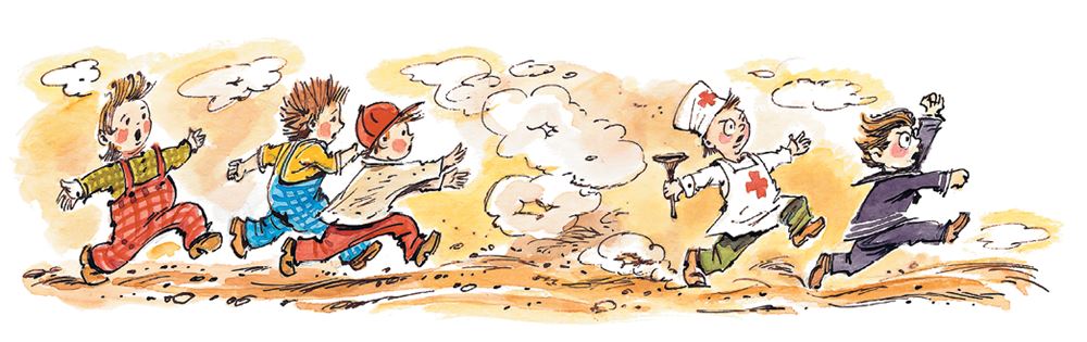 Незнайка вскочил с кровати, выпрыгнул в открытое окно и убежал к своему другу Гуньке. Доктор Пилюлькин вернулся с градусником, смотрит – Незнайки нет.