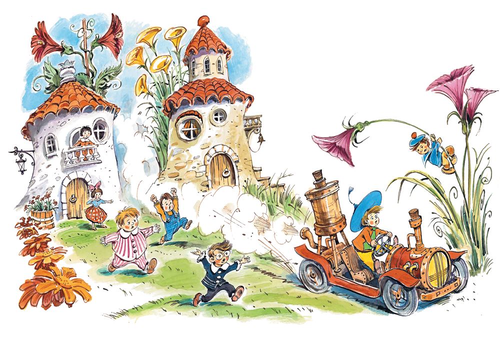 – Берегись! – кричал им Незнайка и мчался вперёд.