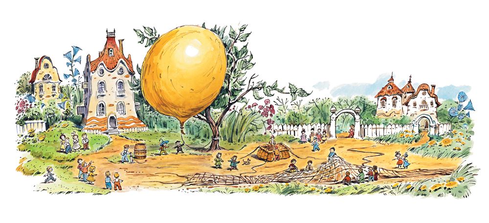 Пока Знайка со своими товарищами занимался этой работой, все жители Цветочного города приходили и смотрели на огромнейший шар, который был привязан к ореховому кусту. Каждому хотелось потрогать шар руками, а некоторые даже пытались его приподнять.