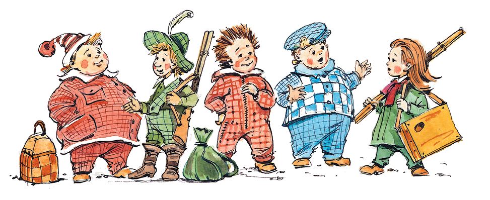 Сиропчик нарядился в клетчатый костюм. Он всегда ходил в клетчатых костюмах. И брюки у него были клетчатые, и пиджак клетчатый, и кепка клетчатая. Увидев его издали, коротышки всегда говорили: «Глядите, глядите, вон идёт шахматная доска». Авоська нарядился в лыжный костюм, который считал очень удобным для путешествия. Небоська надел полосатую фуфайку, полосатые гетры, а шею обмотал полосатым шарфом. В этом костюме он был весь полосатый, и издали казалось, что это вовсе не Небоська, а обыкновенный полосатый матрац. В общем, все оделись кто во что мог, только Растеряйка, у которого была привычка бросать свои вещи куда попало, никак не мог отыскать свою куртку. Кепку свою он тоже куда-то сунул и, сколько ни искал, нигде не мог найти. В конце концов он нашёл под кроватью свою зимнюю шапку с ушами.