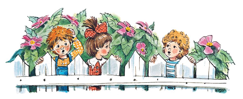 Но шар не лопался, а с каждой минутой становился всё больше и больше. Скоро он раздулся такой большой, что малышам приходилось взбираться на ореховый куст, который рос посреди двора, чтобы обмазывать шар сверху и по бокам.