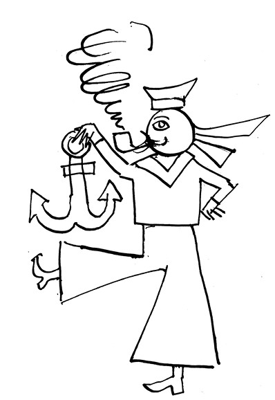 И вот на следующий день, когда я пришёл в класс, то увидел, что на стене рядом с доской нарисован углём морячок. Он был в полосатой тельняшке, брюки клёш развевались по ветру, на голове – бескозырка, во рту – трубка, и дым из неё кольцами поднимался кверху, как из пароходной трубы. У морячка был такой залихватский вид, что на него нельзя было без смеха смотреть.