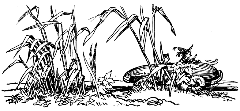 Он взмахнул волшебной палочкой, и сейчас же явилось три куска мыла и три полотенца. Пёстренький хотел удивиться, но вспомнил про своё правило ничему не удивляться и молча пошёл к реке.