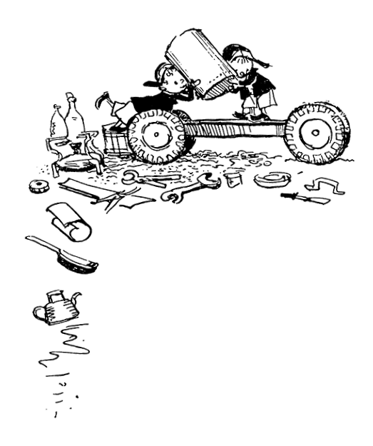 Винтик и Шпунтик по целым дням сидели у себя в мастерской и чинили примусы, кастрюли, чайники, сковородки, а когда нечего было чинить, делали трёхколёсные велосипеды и самокаты для коротышек.