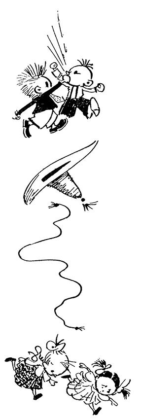 – Так ты из-за этих малышек меня по лбу кулаком бьёшь? – кричал Незнайка, стараясь ударить Гуньку по носу.