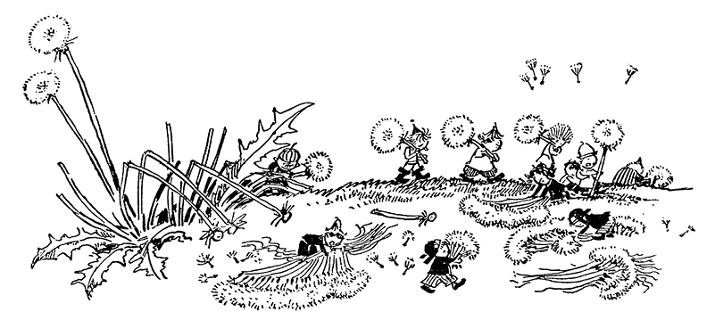 На следующий день Знайка и его товарищи были заняты изготовлением парашютов. Каждый сам для себя мастерил парашют из пушинок одуванчика, а Знайка всем показывал, как надо делать.
