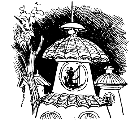 Винтик и Шпунтик растерянно оглянулись по сторонам, не видя во всей комнате, на чём бы здесь можно было присесть, но Шурупчик протянул руку и нажал имевшуюся на стене подле гамака кнопку. Сейчас же у противоположной стены откинулись три откидных стула, сделанных на манер откидных стульев в театре. Винтик и Шпунтик сели.