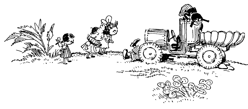Наконец Винтику удалось найти причину остановки мотора. Машина заработала. Водитель был рад и с благодарностью пожимал руки Винтика и Шпунтика: